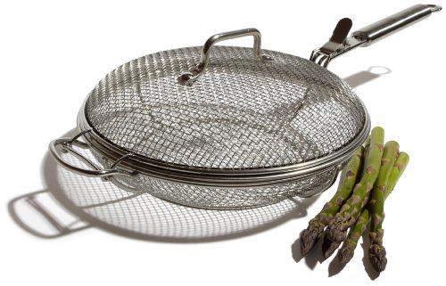 Promotes smoky flavor whereas maintaining small foods from falling into fire.Stainless-steel handle maintains warmth at distance; hanging loop for easy storage.25 via 7 by using 11-3/4 inches; dishwasher-safe.2-piece frying pan ideal for outside grilling.Constructed of sturdy stainless-steel mesh along removable lid. This is the ultimate word "grill" fry. Pre-marinate the meals and collect the fire actually hot. As soon because the meals is done, add it to a stainless-steel basin that accommodates your sauce and give it a accessible information a rough toss. Use ginger butter for shrimp. This is one of the easyst ways to cook any small item on the charcoal grill. a distant Award-winning chef-restaurateur Tom Douglas, Pinzon, and Amazon.com introduce a line of multi-functional products with the intention to inspire house cooks and construct self assurance within the kitchen. This two-piece frying pan, top for outside grilling, is constructed of durable stainless-steel mesh and is derived together with a matching, detachable lid. The pan promotes very good searing for a scrumptious smoky flavor while preserveing meals--even little veggies and shrimp--from falling into the fire. The lengthy, stainless-steel deal with have the dollars fors a stable grip and incorporates a placing loop. To add components to the pan, simply press the lever on the basket’s handle and elevate the lid. Replace the lid and safely toss any combination of meat, seafood, and greens while grilling. This grill-top frying pan portions roughly 25 inches lengthy through 11-3/4 inches huge through 7 inches high, together along the deal alongs. The grill basket together with lid parts roughly 11-3/4 inches extensive by way of 5-3/4 inches high. This pan is dishwasher-safe..